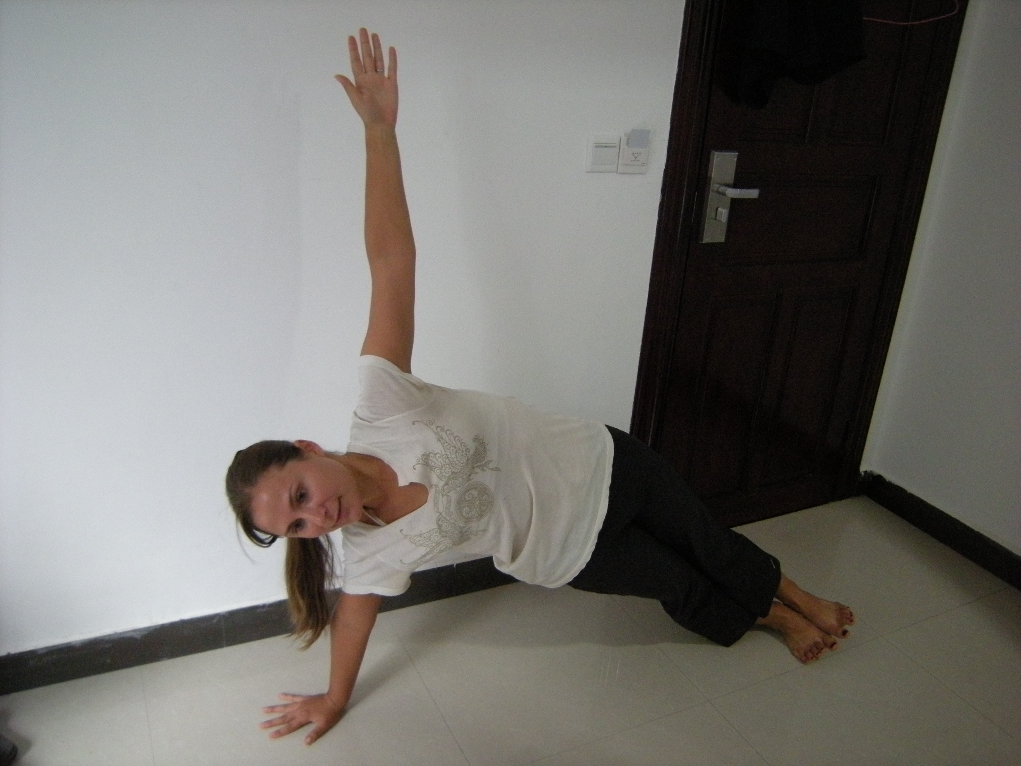 - Shift weight onto right hand and right foot, making your way into a side plank