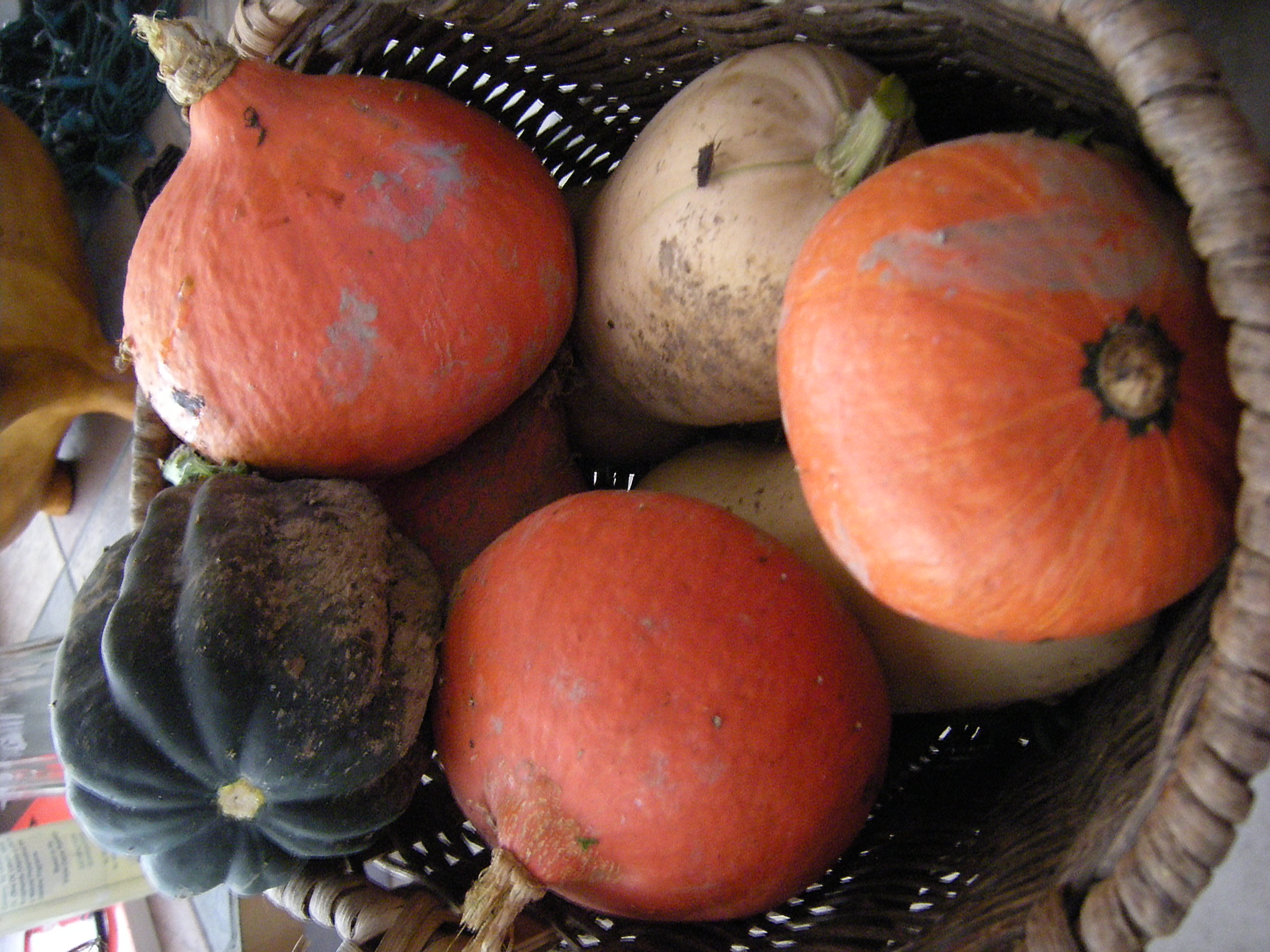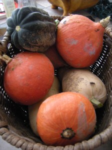 Fresh from the garden, still a bit muddy! I LUV all types of winter squash. These bright orange beauties are called Red Kuri and I hope to try them for dinner tonight. My absolute favorite type is Delacata but they don’t seem as popular here as they are in the Northwest.