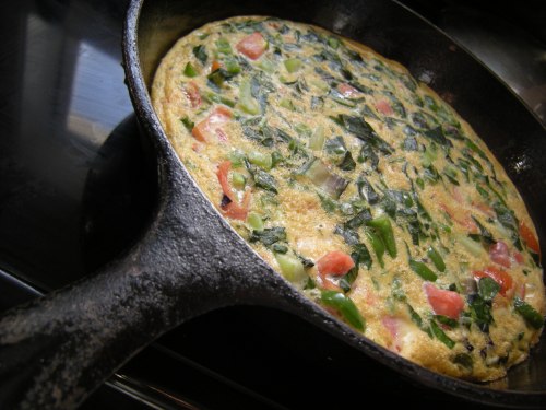 This eggy deliciousness is chockfull of green peppers, bok choy, tomatoes, dill, basil, and oregano. The veggies are from my dad’s garden and the herbs are from ours.