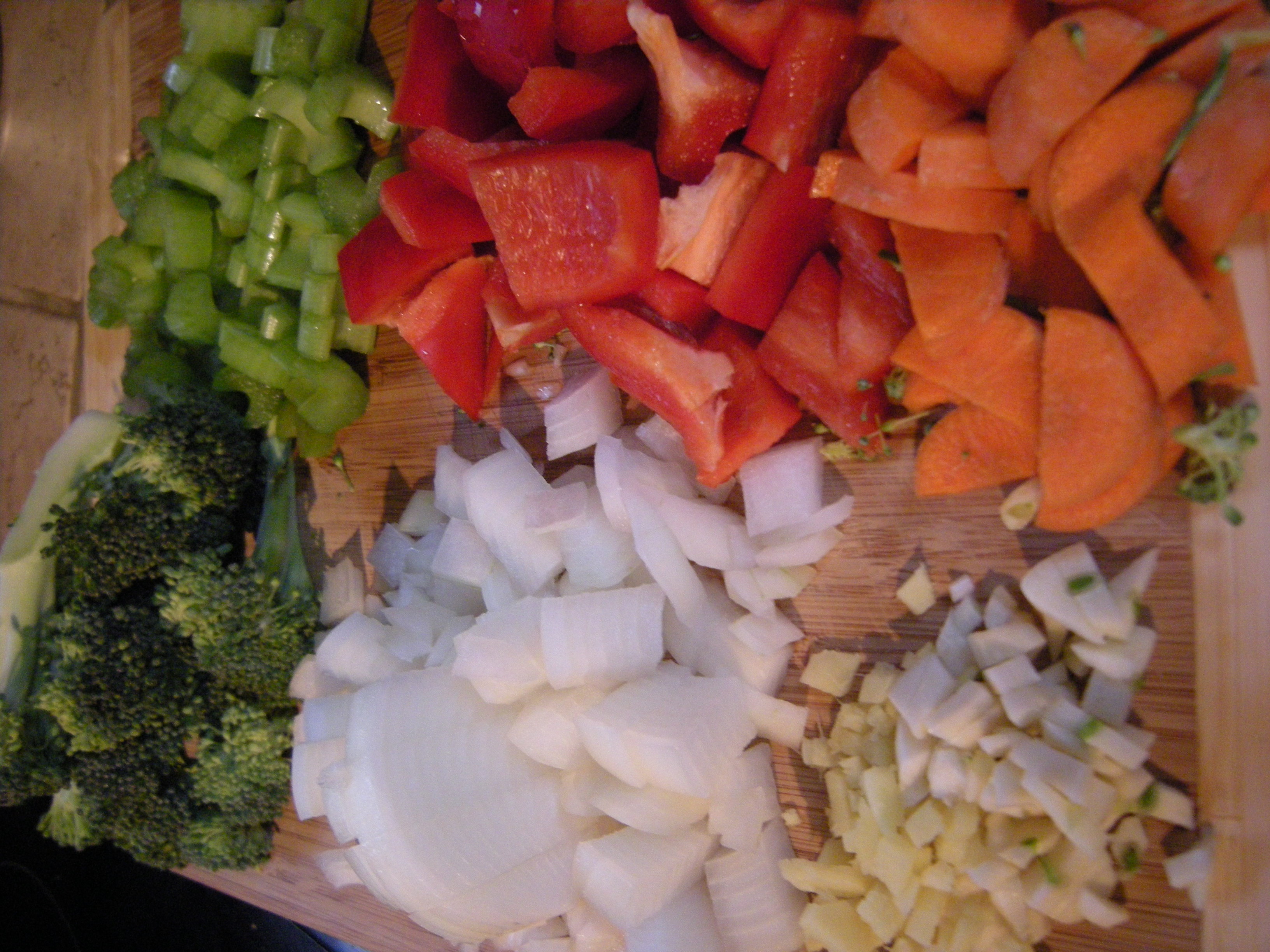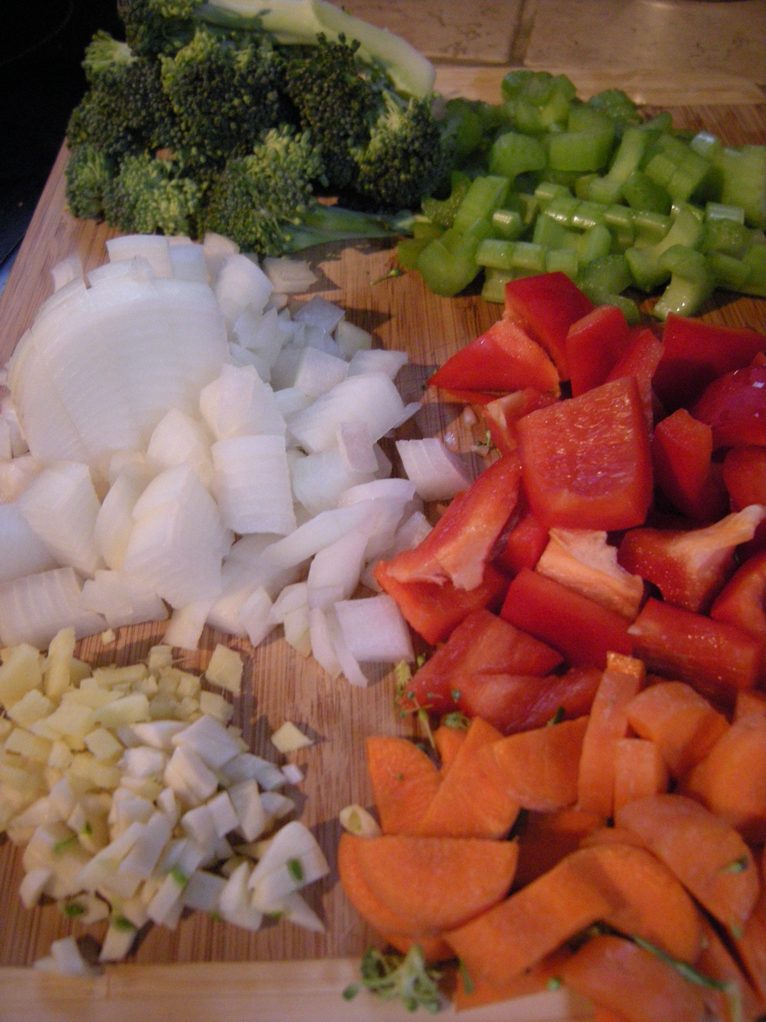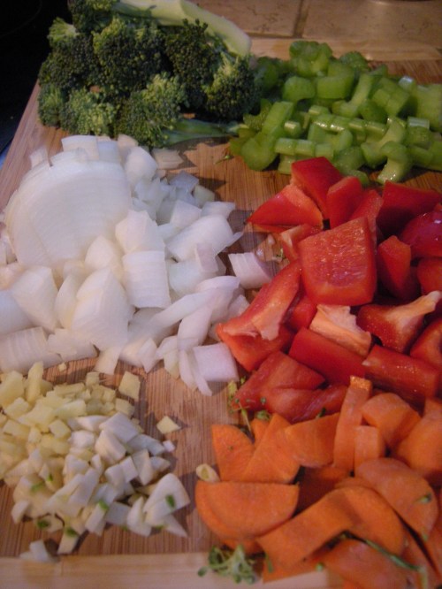 Lunch and blogging are occurring simultaneously and is starting with leftovers from last nights simple yet tasty veg stirfry