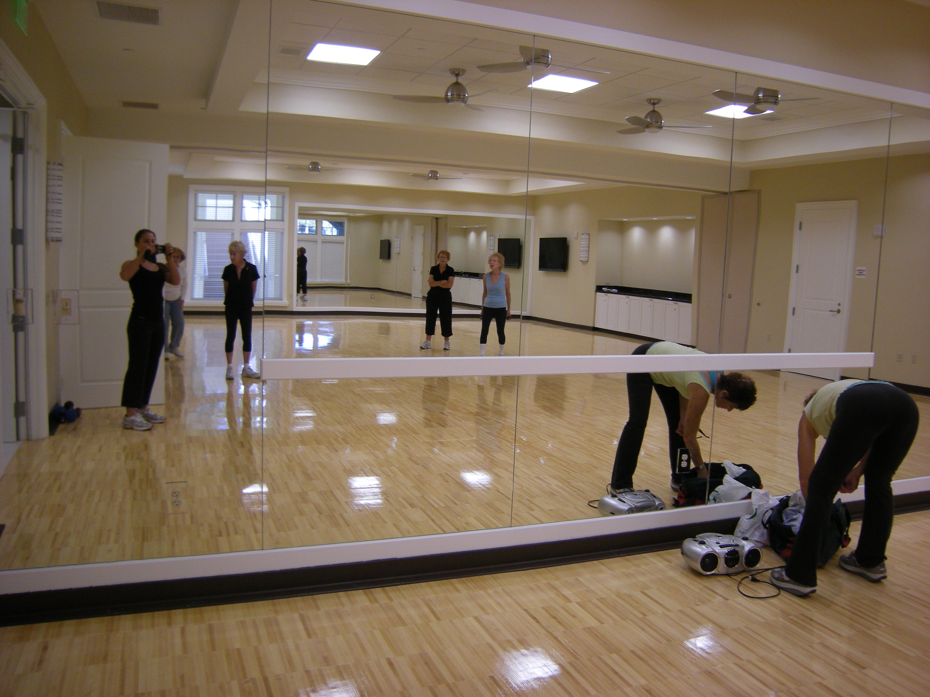 My grandma attends aerobics class every Monday, Wednesday, and Friday so when I am here I go too.  The instructor is really fun, she has great energy and pushes these women HARD!