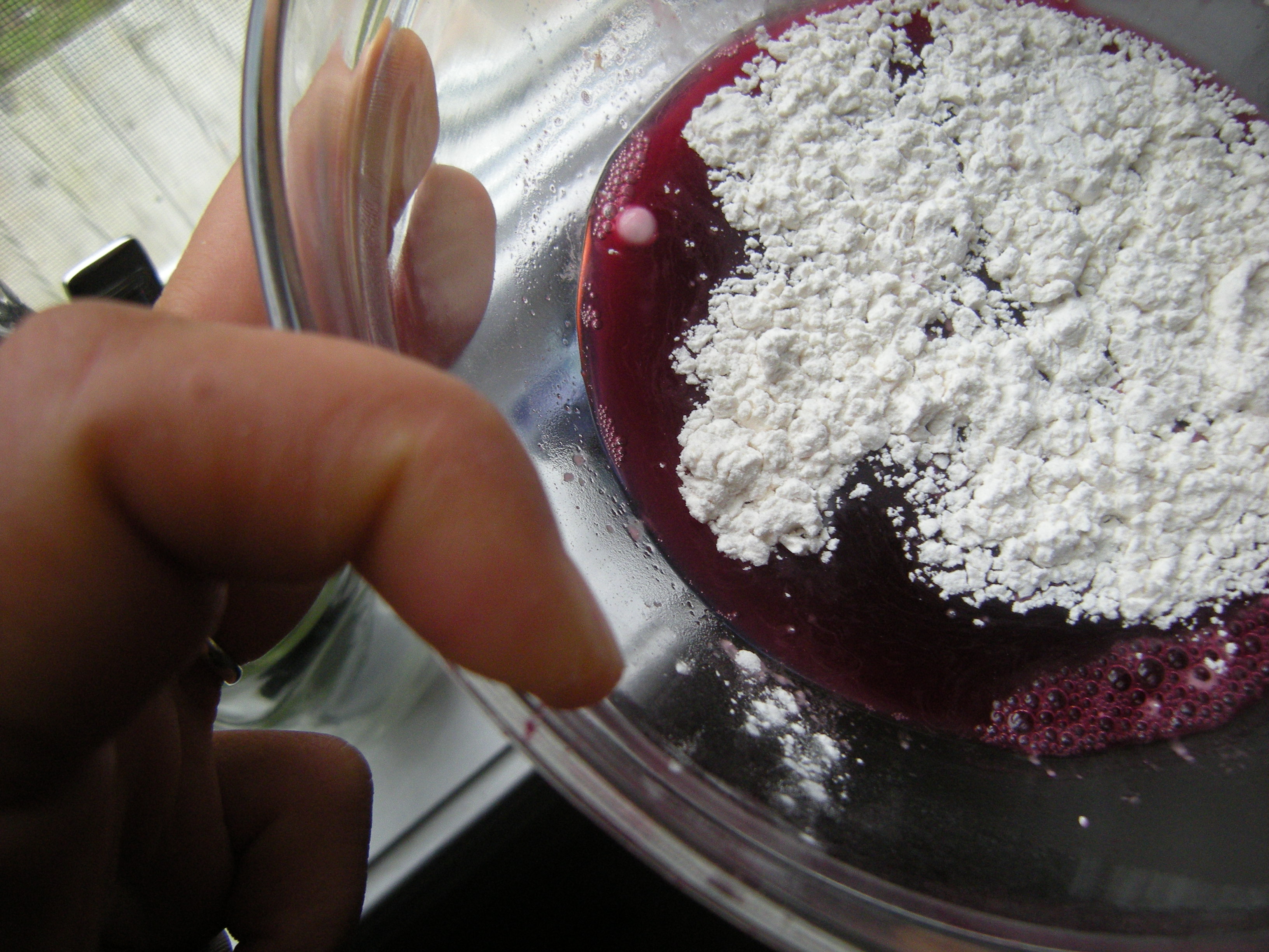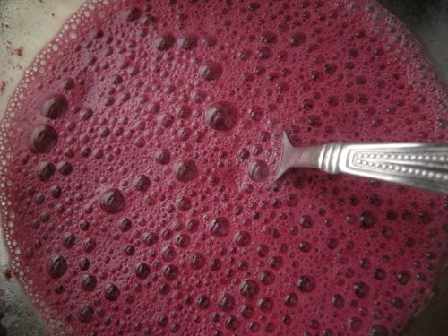I mixed 1 Tablespoon of arrowroot powder into 1/3 cup cranberry-grape juice (only because it’s all I had and the color matched the plums!).