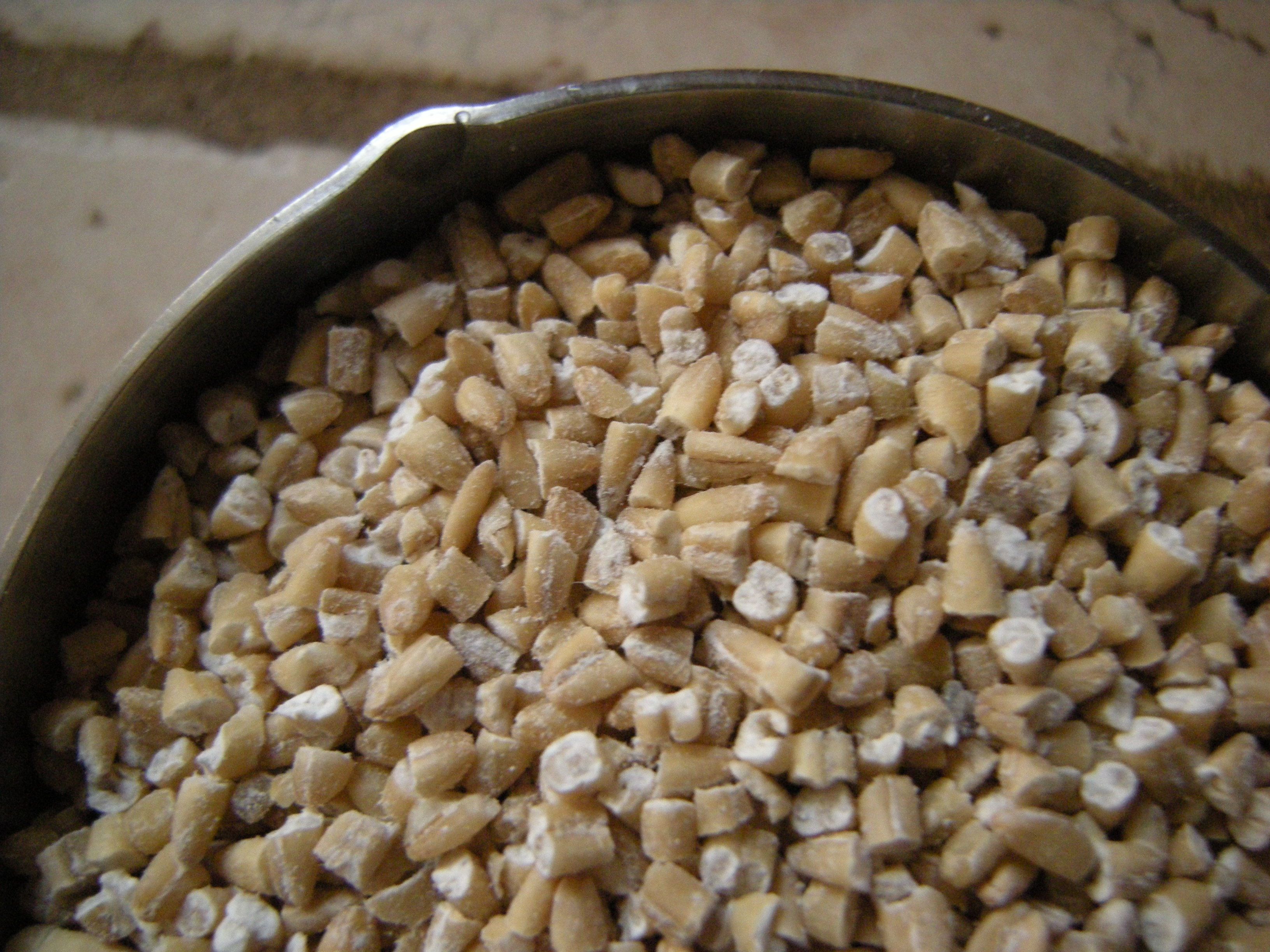 Steel Cut Oats topped with nutmeg, cinnamon, a few globs of the almond dough, and almond milk.