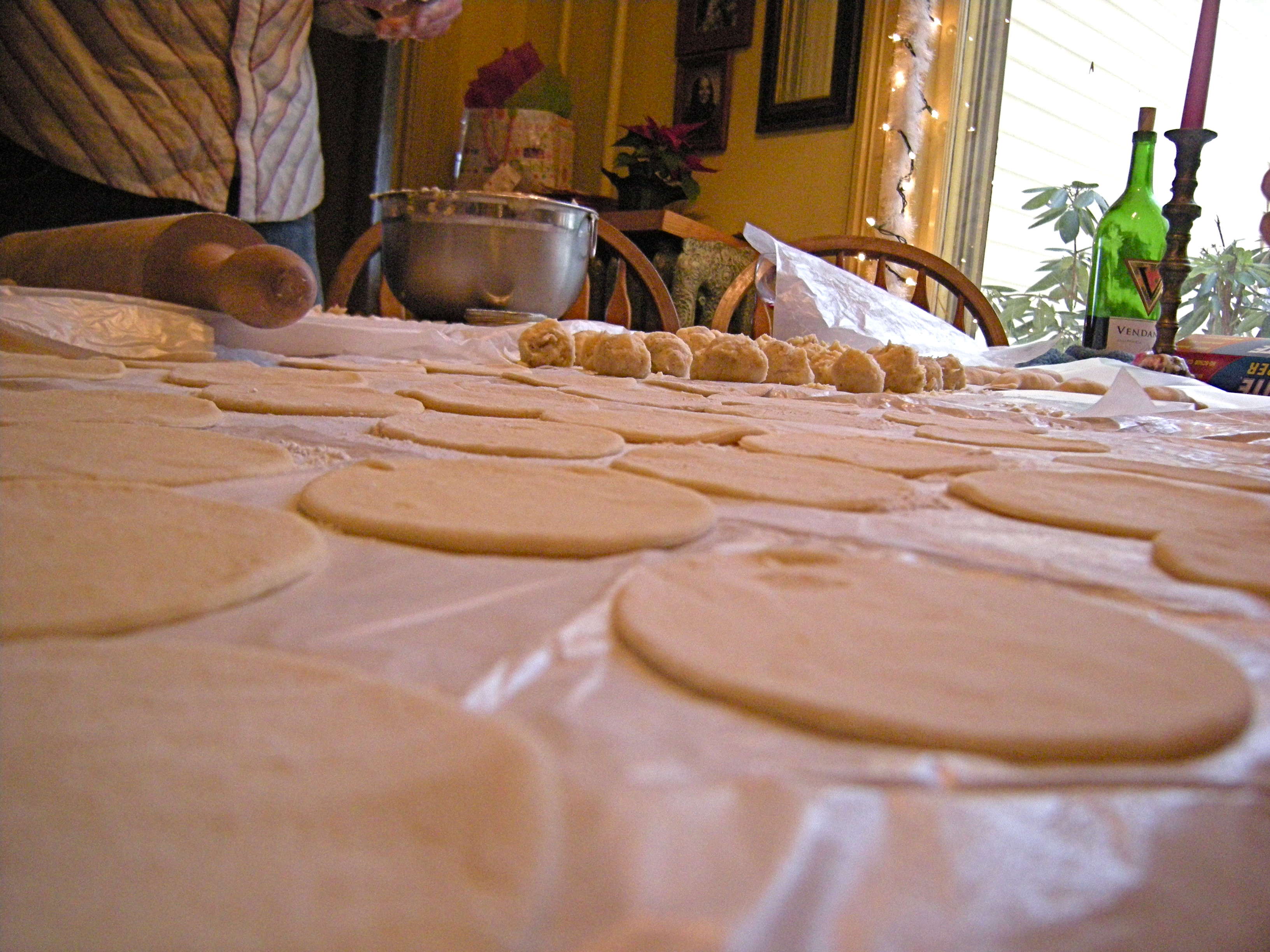 Making pirogies at Christmas time is a family tradition from my mom’s Polish and Ukrainian heritage.  Almost every year we break out the white flour and more butter than we probably use in a whole year and get to work.