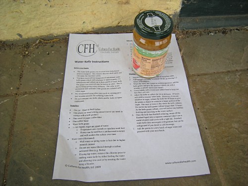 The other day I saw the e-mail address tacked to the side of my fridge and decided I would give kefir grains a go. Stephanie promptly returned my inquiry and said that she would be happy to leave me some grains on her front porch (she’s not home much).