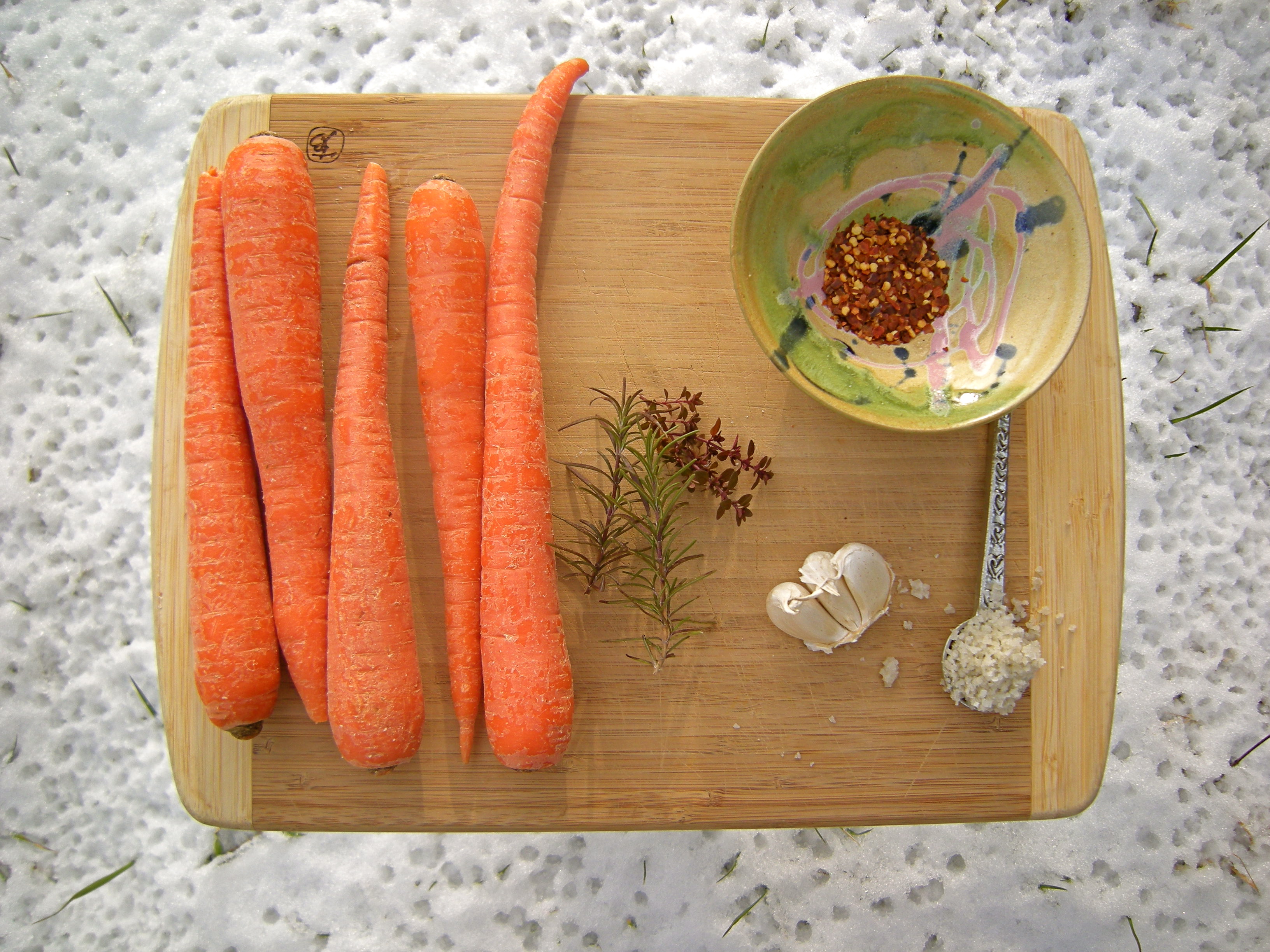 I ADORE your first picture of your pickling ingredients on a simple wooden cutting board resting atop a fresh layer of snow : ) It made me happy.