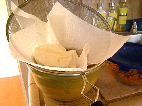 Place 1 cup of plain yogurt (I used organic nonfat) to strain.