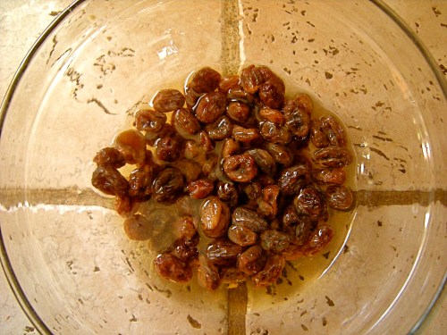 Soak 1/4 cup raisins in 1/4 cup of water for at least 15 minutes before you start in on the batter.