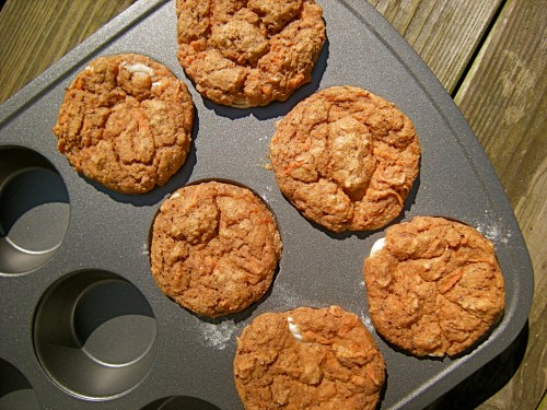 (Note: this was my second batch, where I used a flax egg instead of a real egg. The egg produced better results so I went back to it for the post but I forgot to take a picture of the cross section. These ones fell and were a little dense :(. )