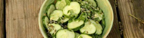 Accompanied by a cucumber salad with garden herbs and lentil sprouts