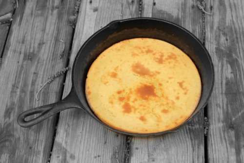When you are ready to bake it off add the rest of your olive oil to an oven-safe pan (I used cast iron) and place in oven, turn on your broiler. When the pan in hot, hot, hot, carefully pour in your batter.