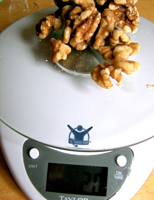 * Thanks for all the great feedback on food scales. I ended up going with the cheap one from Bed, Bath, and Beyond (The Biggest Loser Taylor scale) because I had a coupon (of course, it’s B,B, and B) and because I am trying to avoid mail-ordering things (bigger carbon footprint + s &h fees). It’s so fun to have a scale!