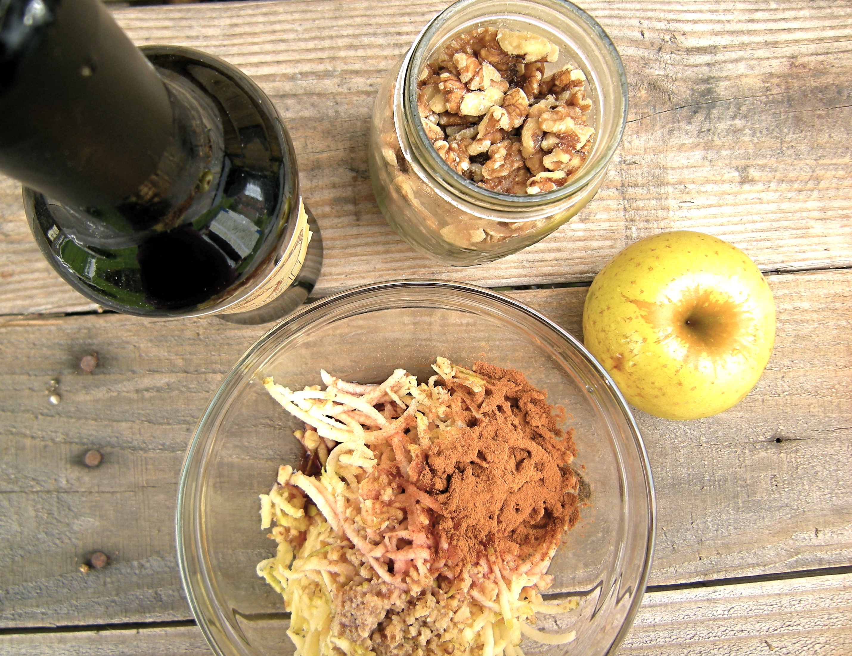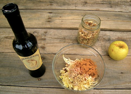 Most Charoset uses honey and red wine but I thought that Port would be a nice stand-in for both.