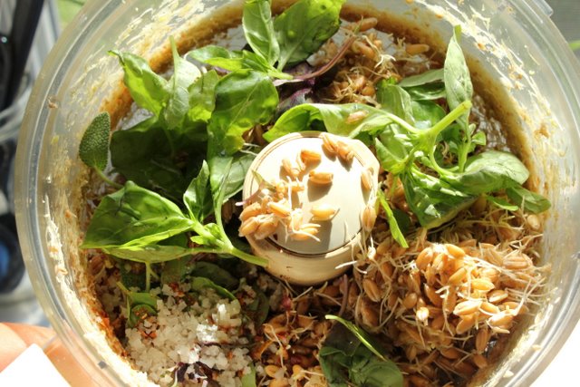 …throw them in the food processor with some herbs (fresh or dried), sea salt, a drizzle of olive oil, and maybe some red pepper flakes if you like things a little spicy.