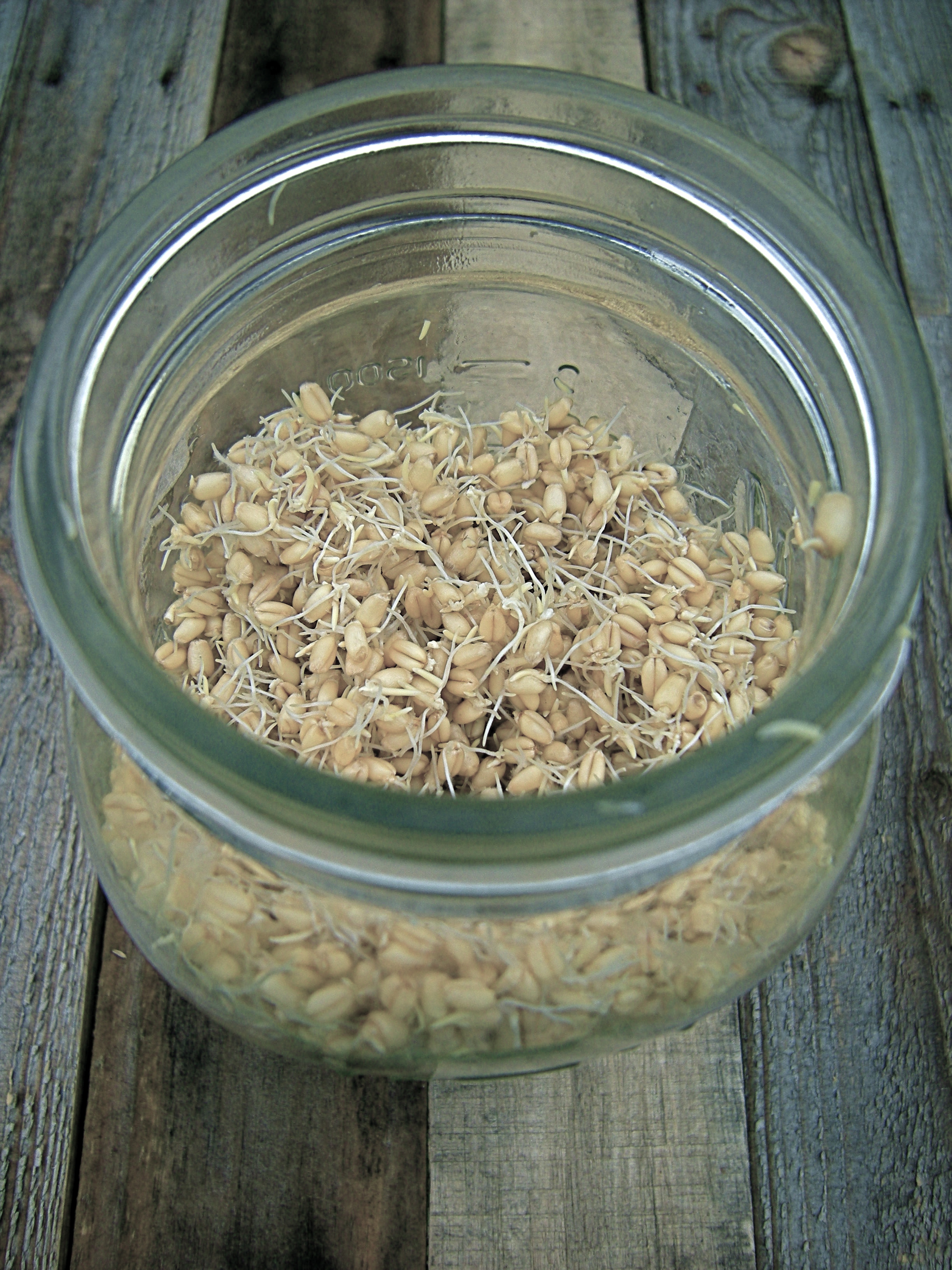 I baked this batch of sprouted wheat bread in individual biscuit form because the first loaf was so crumbly and took forever to cook.