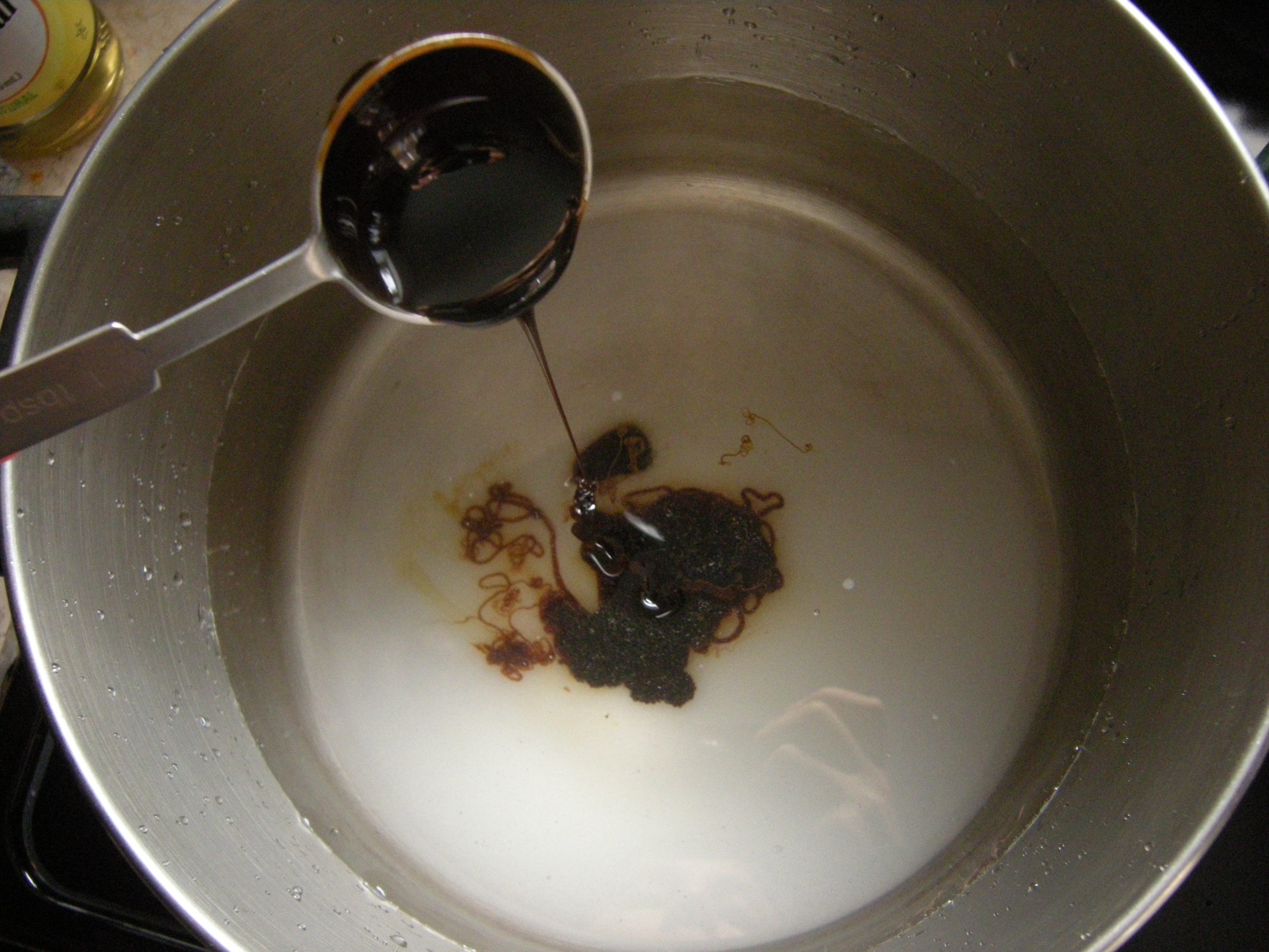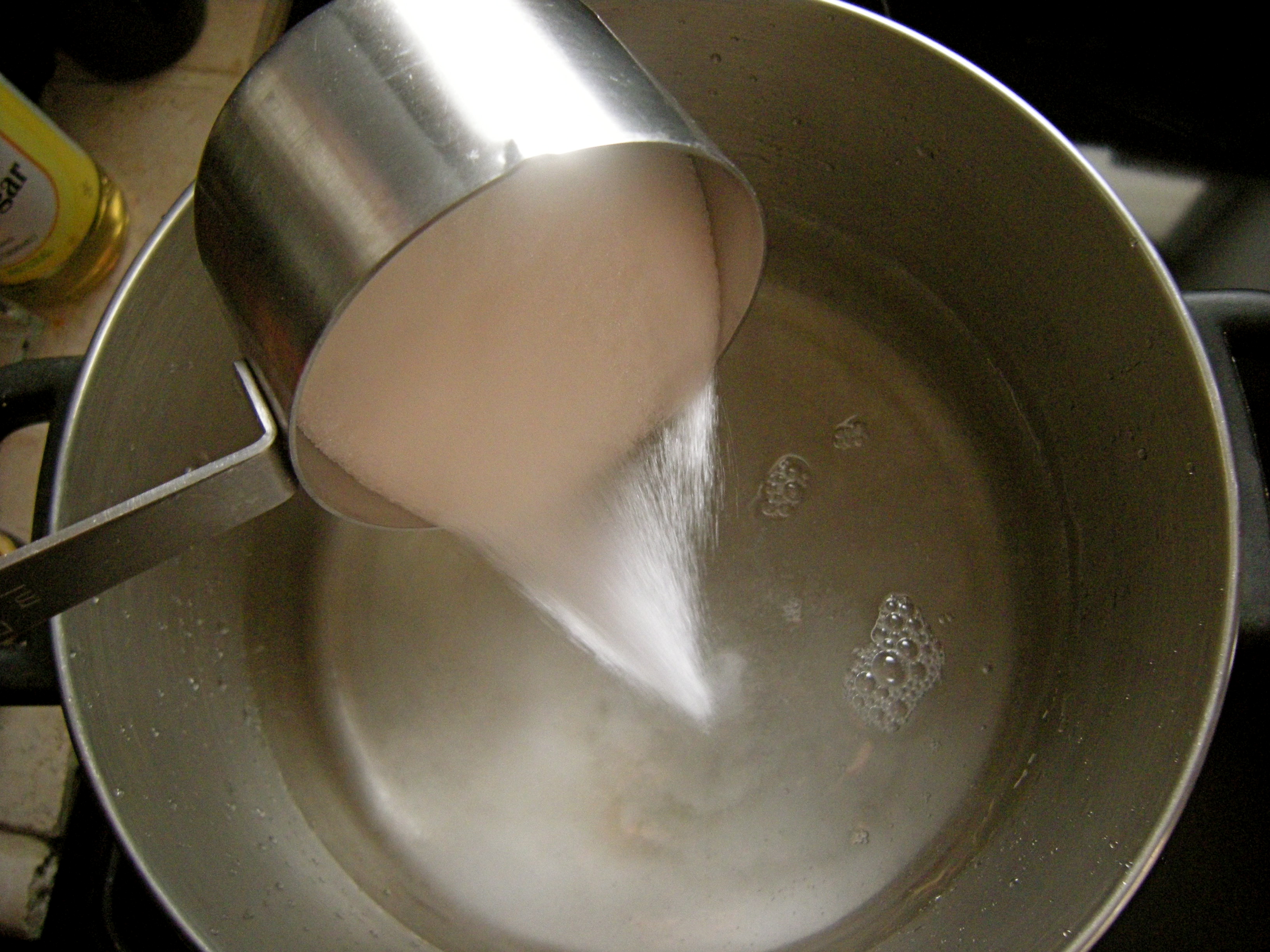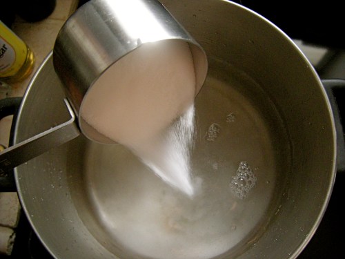 Once the water boils and the sugar dissolves, turn the heat off and leave the pot to cool to room temperature.