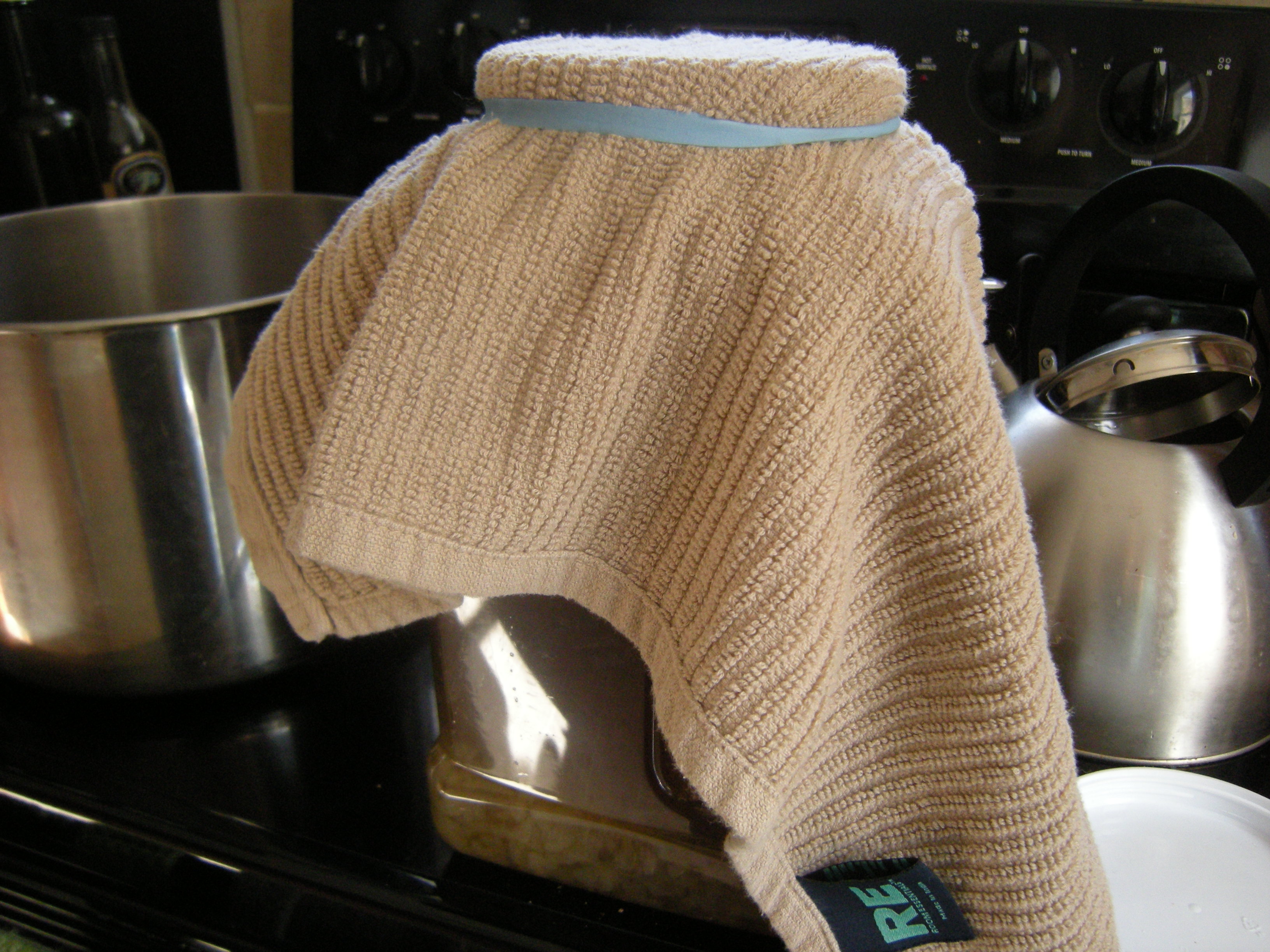 Cover the container with a clean dish cloth and fasten with a rubberband