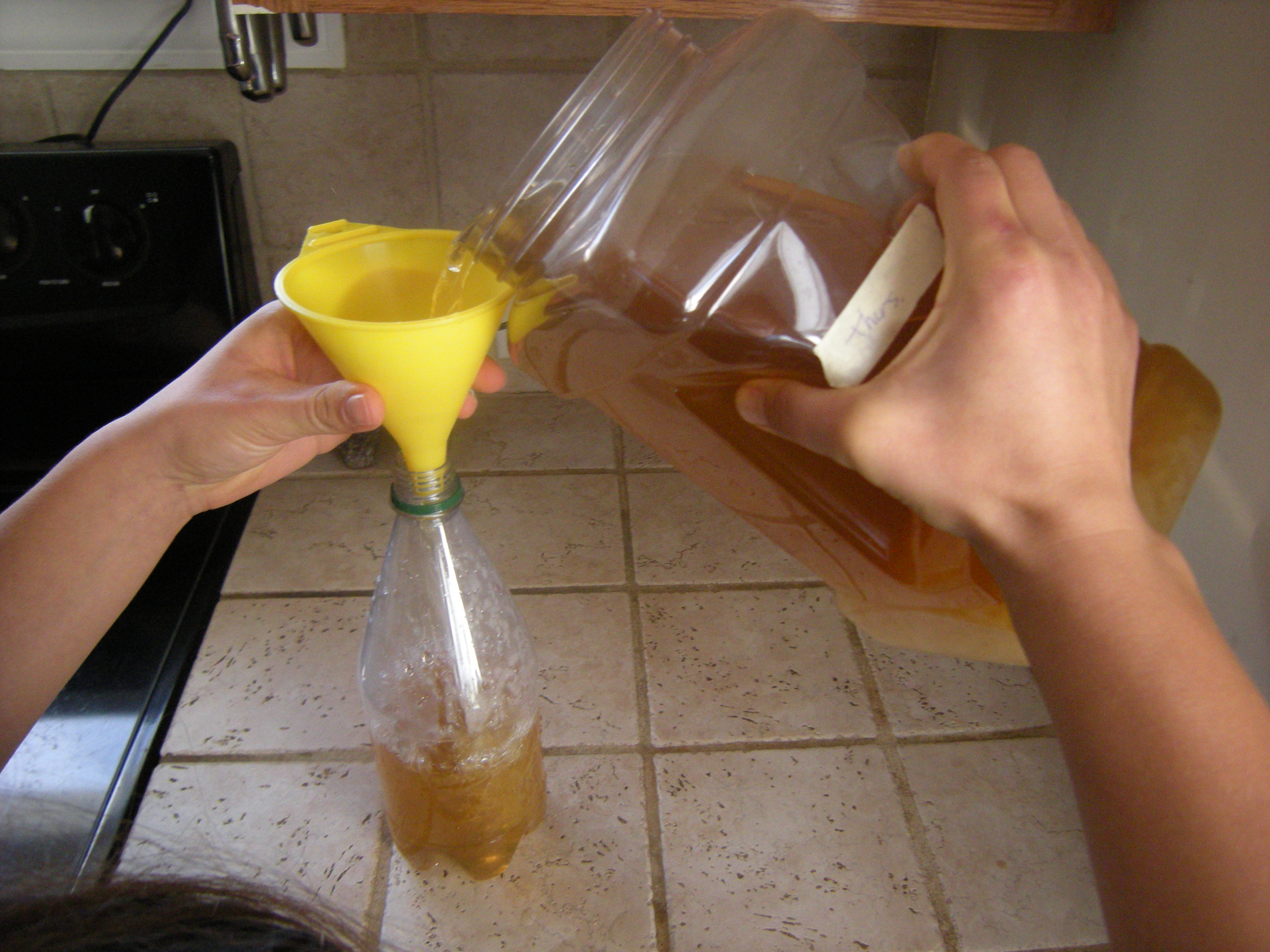Pour into a clean glass or plastic bottle.
