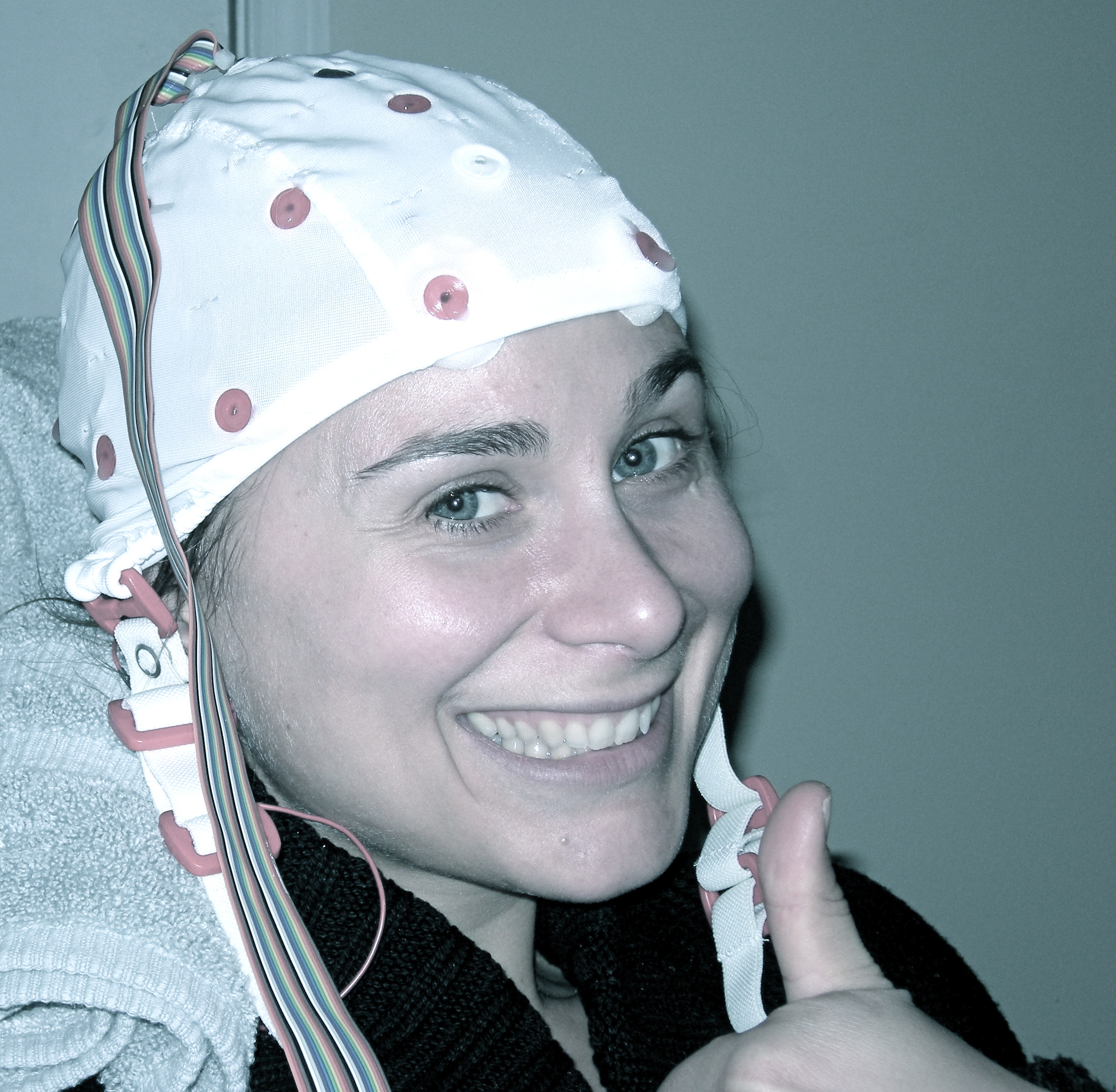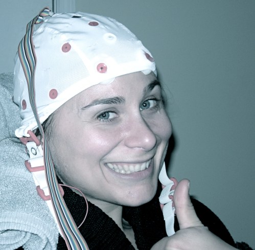 But first came the crazy cap and the goo electrode conductive gel. The gel goes into each of the twenty sensors in the cap to ensure good electrical contact (not as scary as it sounds, I only felt the slight pressure of the tight cap, NOT the electricity).