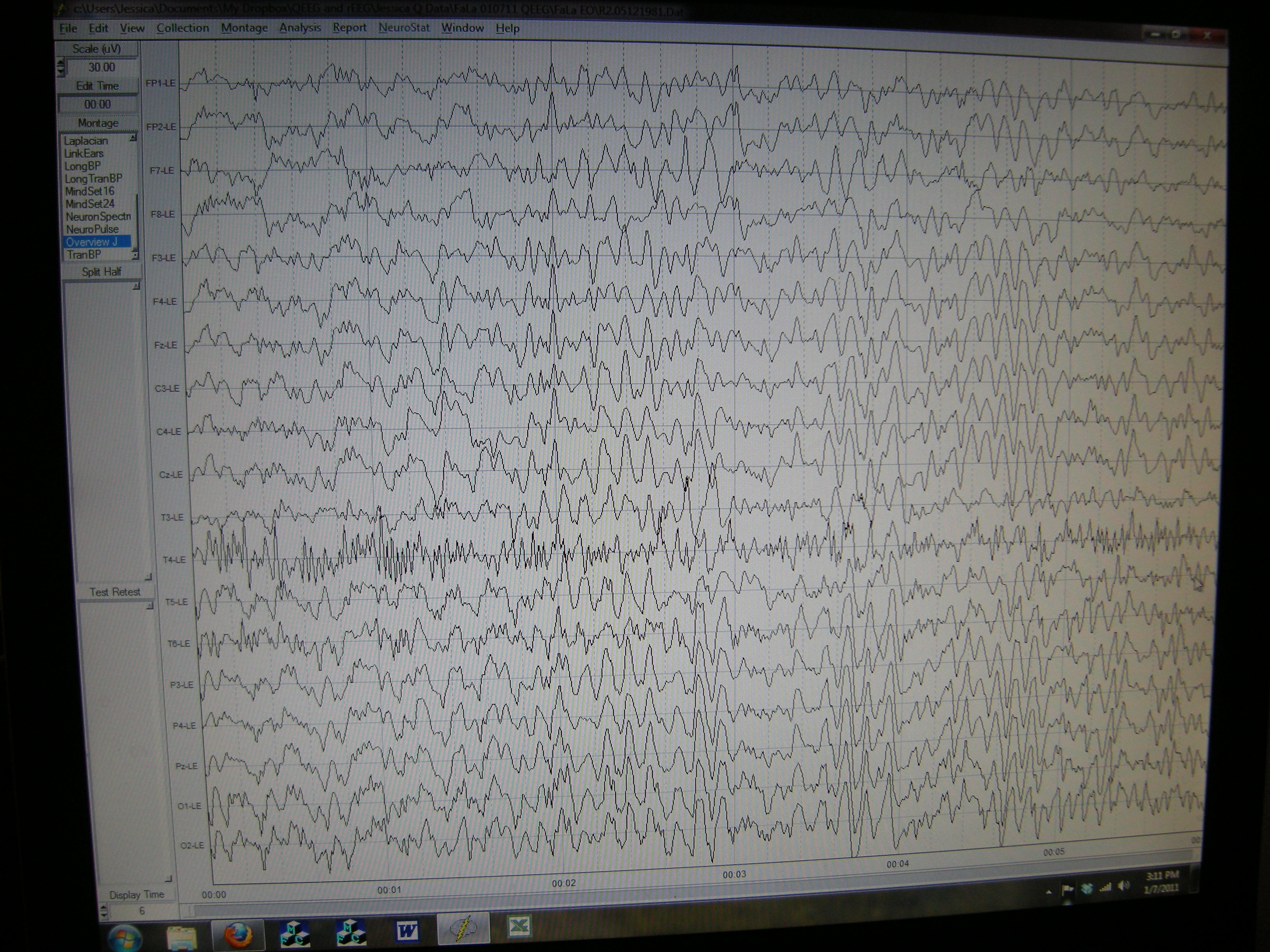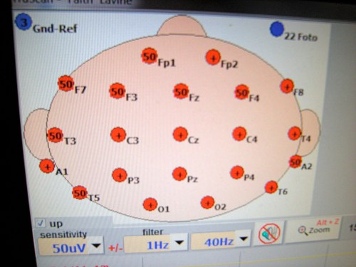 The purpose of the Quantitative Electroencephalogram (QEEG) is to gather information about the patients brain activity to assist in diagnosis and treatment (Jess, please jump in and correct me if I am misspeaking on any of this). From my QEEG we saw that I had many big theta waves in the front of my brain