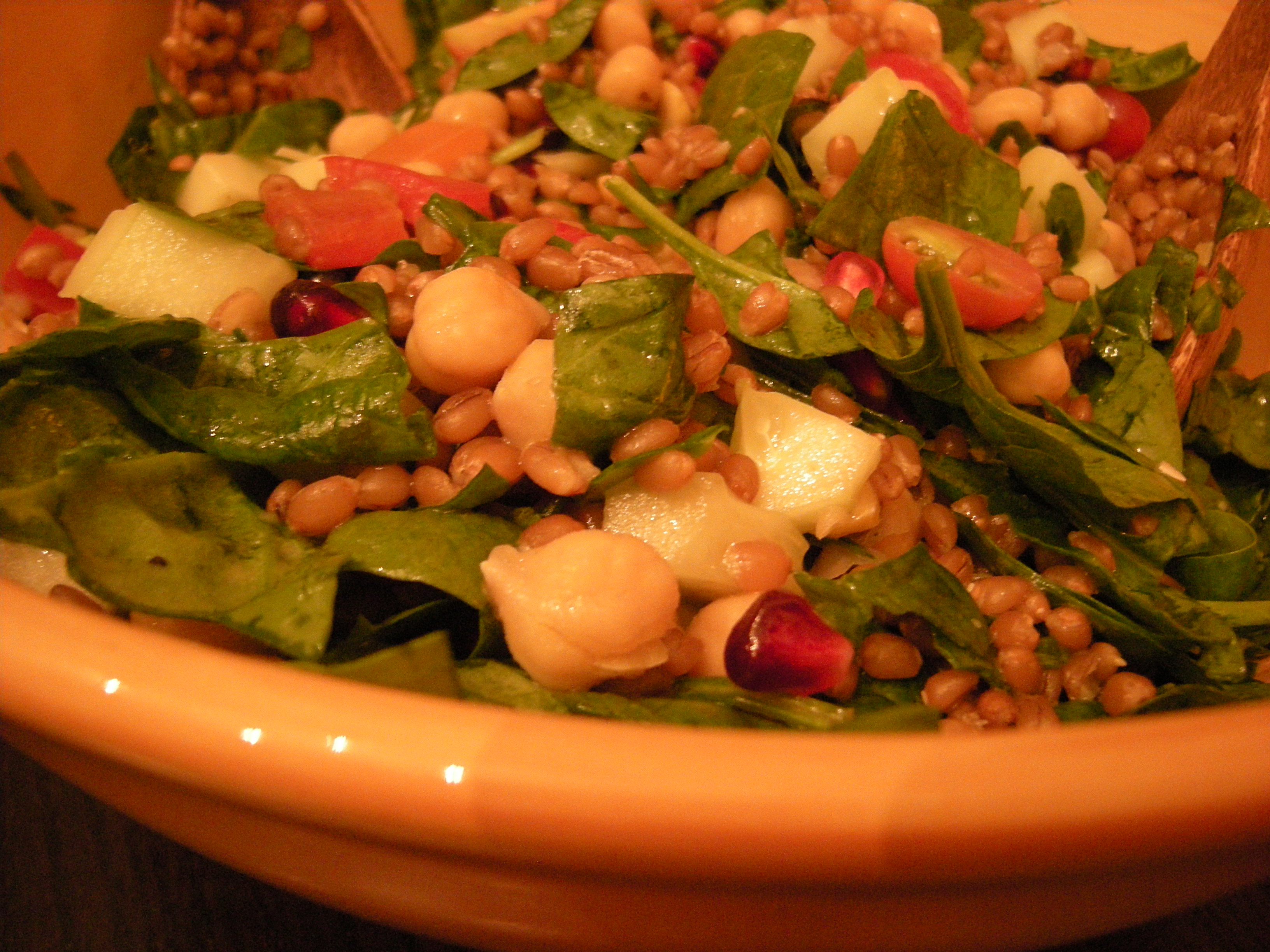Kath made a wheat berry salad that was spot on for texture combinations, with chewy grains, meaty garbanzos, crisp cucumbers, and juicy pomegranate seeds.