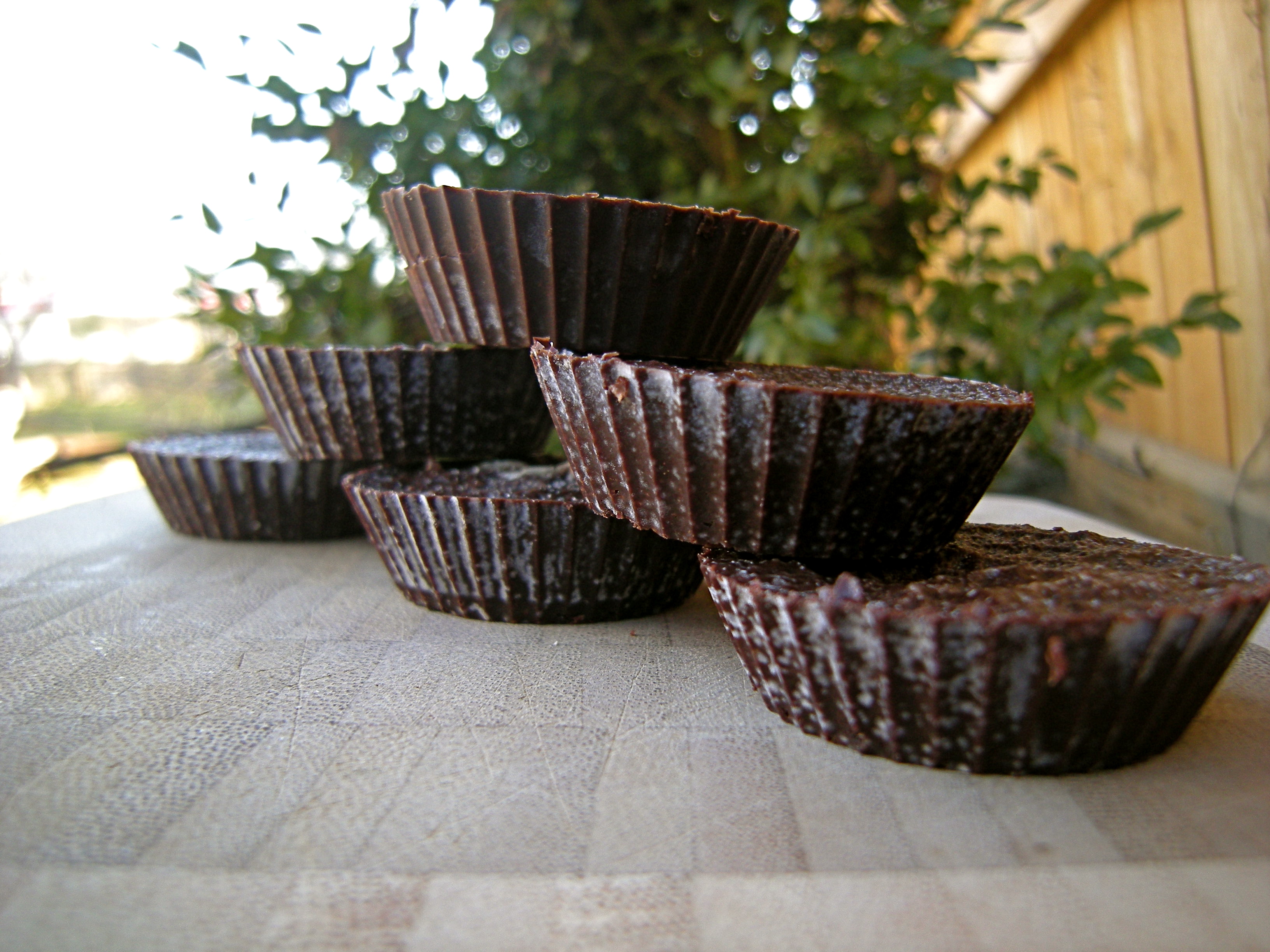 To make these little cups of melt-in-your-mouth heaven I mixed half a cup of liquid unrefined coconut oil, half a cup of cocoa (preferably non-alkalized, it’s much healthier), a fourth of a cup of melted honey, a drizzle of vanilla, a pinch of salt, and stevia to taste. Next time I think I will forgo the honey all together and just sweeten with stevia.