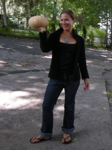 Remember that heirloom pumpkin I bought at the Lewiburg Farmer’s Market a few weeks ago? Here, I’ll give you some hints