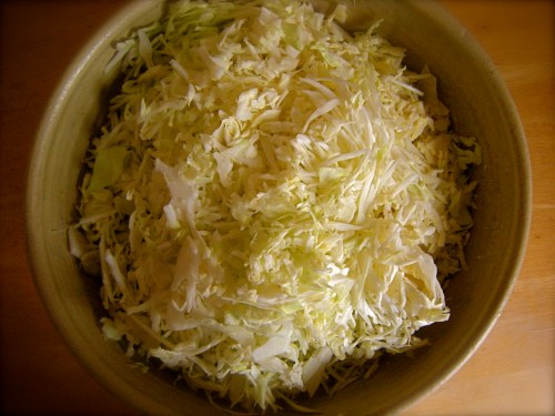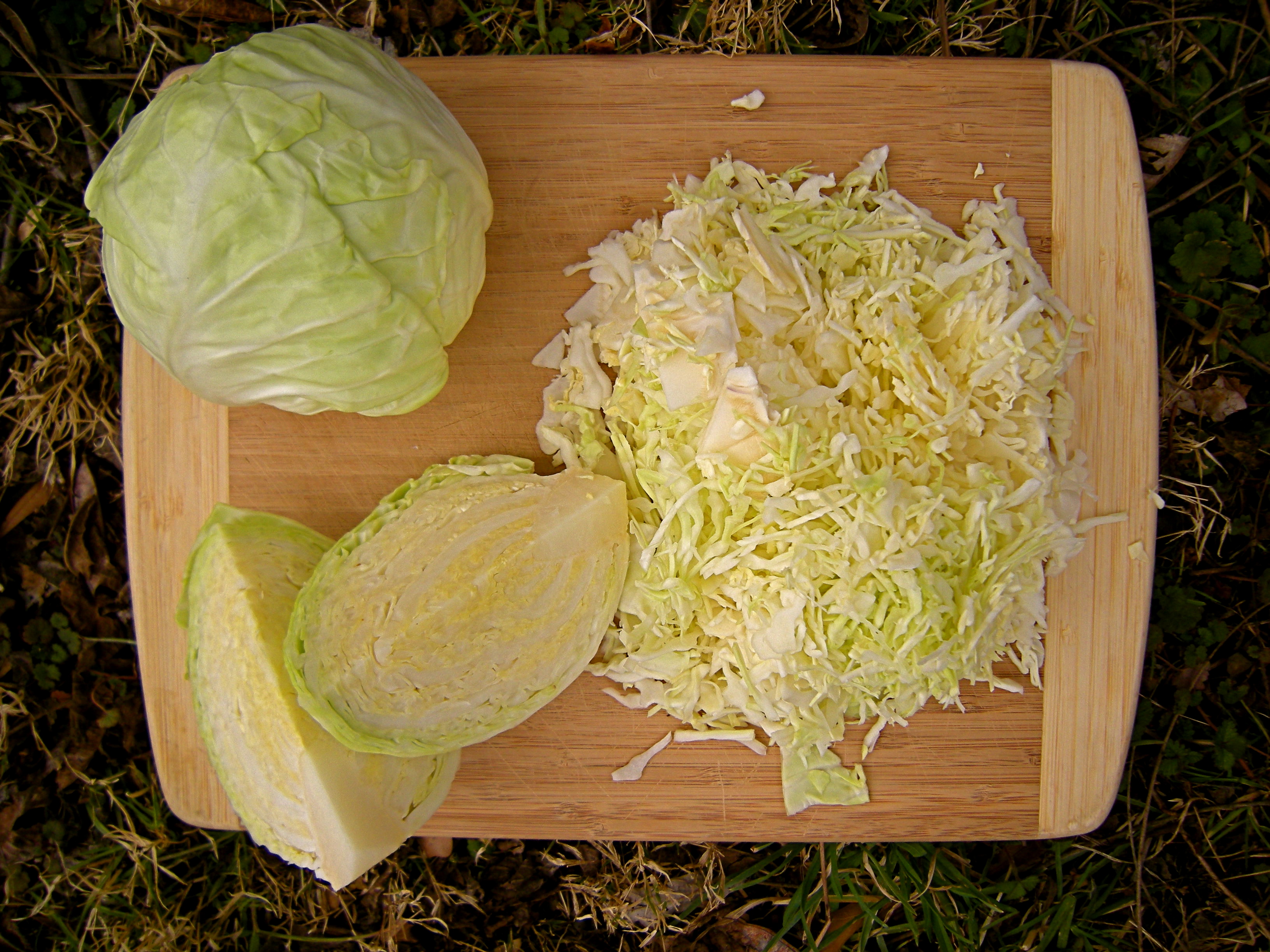 Start with a couple pounds of green or red cabbage. Today I used about 3 pounds of green.