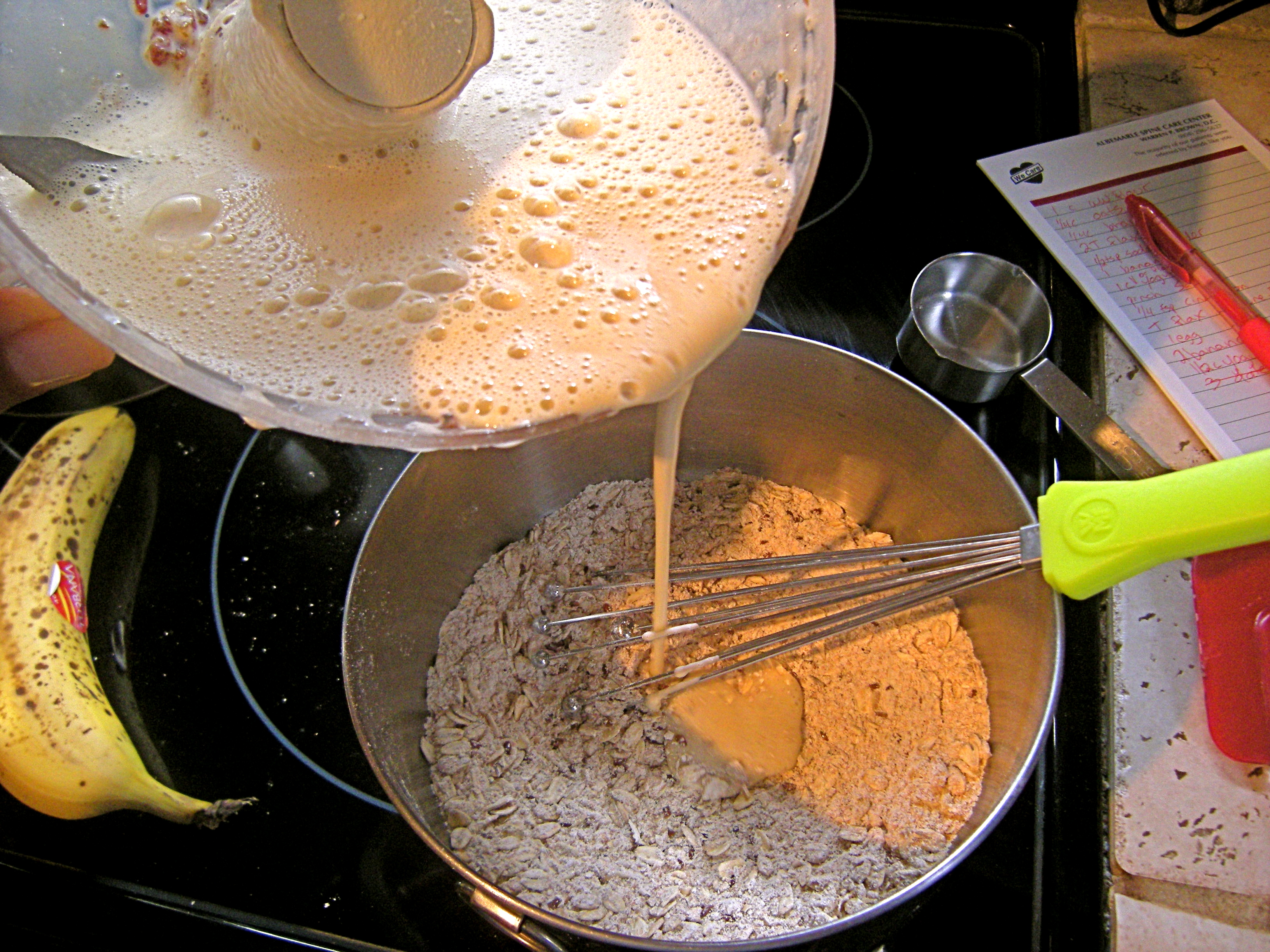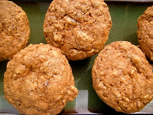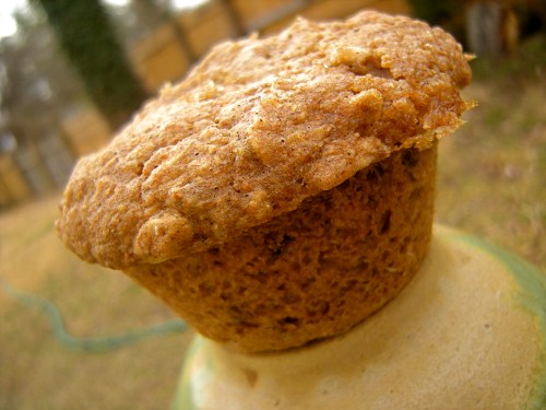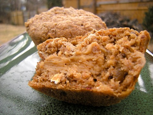 These muffins are 100% whole grain, low-fat, high fiber, fruit-sweetened goodness. Don’t expect sweet and light, these babies are dense and not overly sweet.