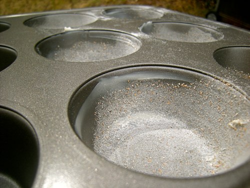 Step 1: Scoop just under a fourth of a cup of batter into each cup.