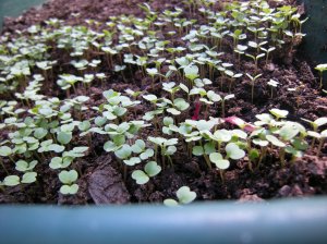 If all goes as planned I will be eating these little greeny babies in the form of spinach, mustard greens, and arugula before long. I purchased these seeds at the Vegetarian Festival a few weeks ago from South Exposure Seed Exchange, a Virginia company.