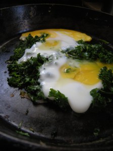 Breakfast (yogurt and cereal) was 3 and a half hours ago so it was definitely time for some noshing. I rarely go more than 4 hours without eating, I like to attribute my hearty appetite to a good metabolism :). This egg/kale combo was served up with some roasted garlic cloves, chopped tomato, and herbed salt. Just what I needed. Are you still eating eggs or have you been scared away from them with all the recalls?